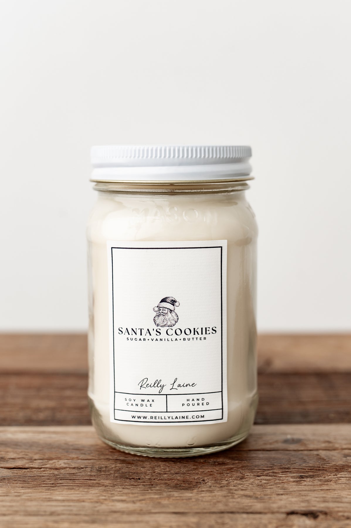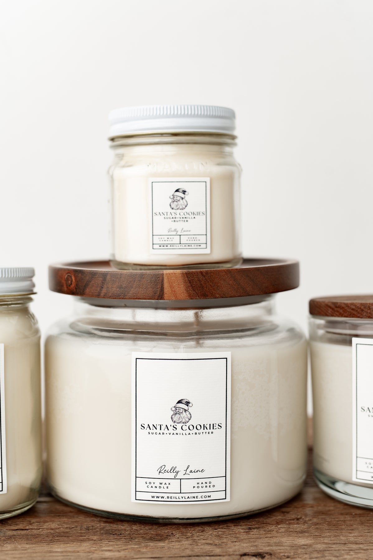 Santa's Cookies candles bring the sweet smell of holiday cheer into the home. Enjoy the scent of cinnamon, sugar, vanilla, and butter without the hassle-- no baking required! Handmade with soy wax and scented oils for a delightful holiday treat. Delicious!