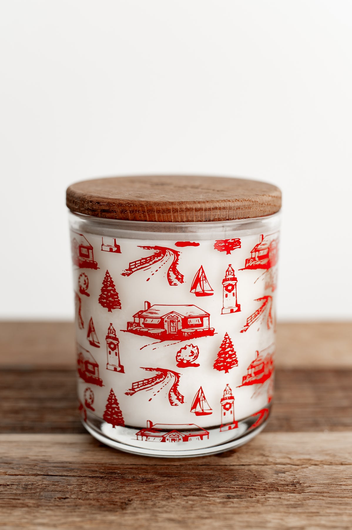 Take a joyful journey with our Signature Holiday Toile Print Candle. Our limited edition Après Ski scent brings cozy notes of champagne, balsam, and bergamot. Let this candle guide you home for the holidays!