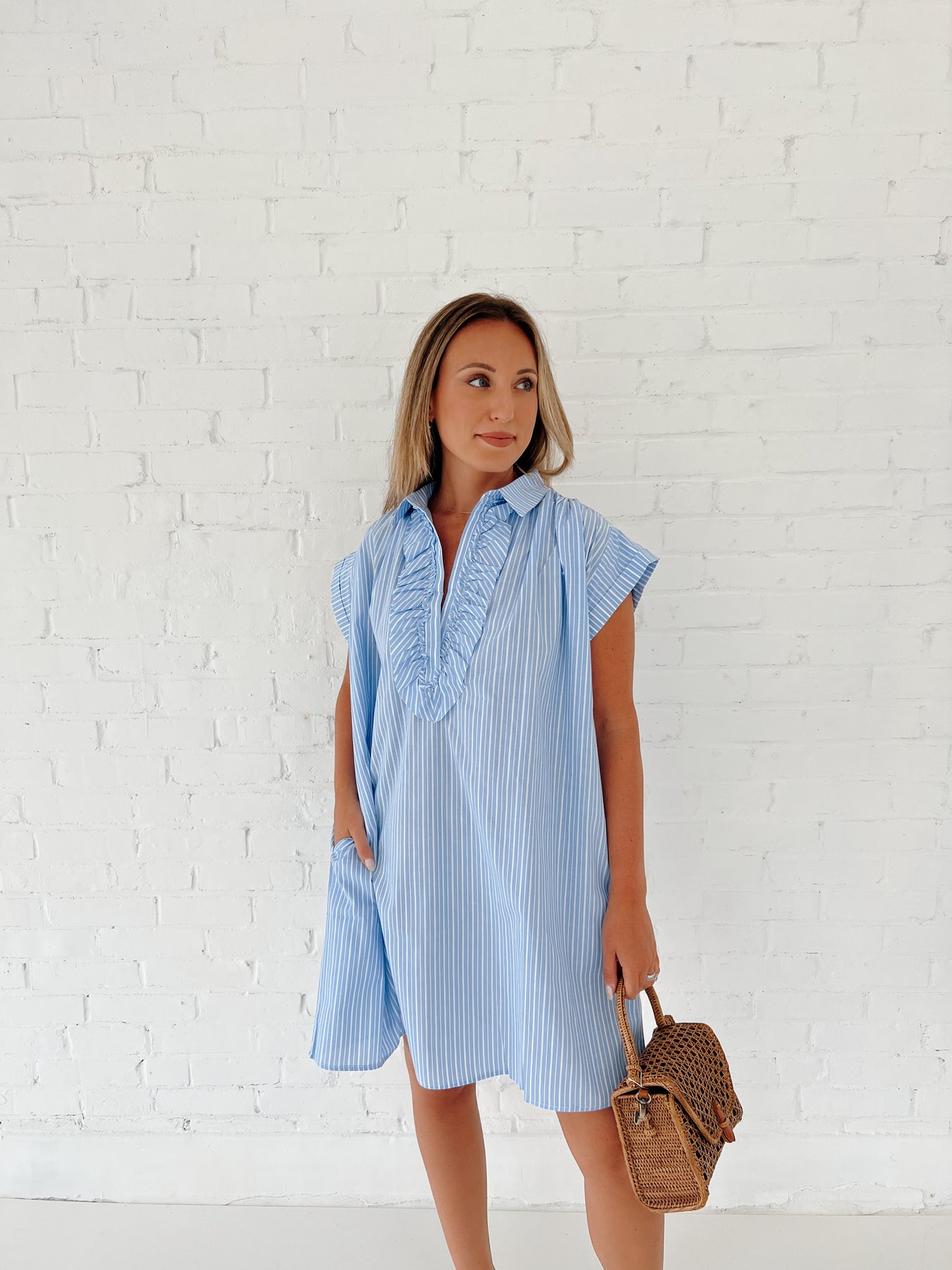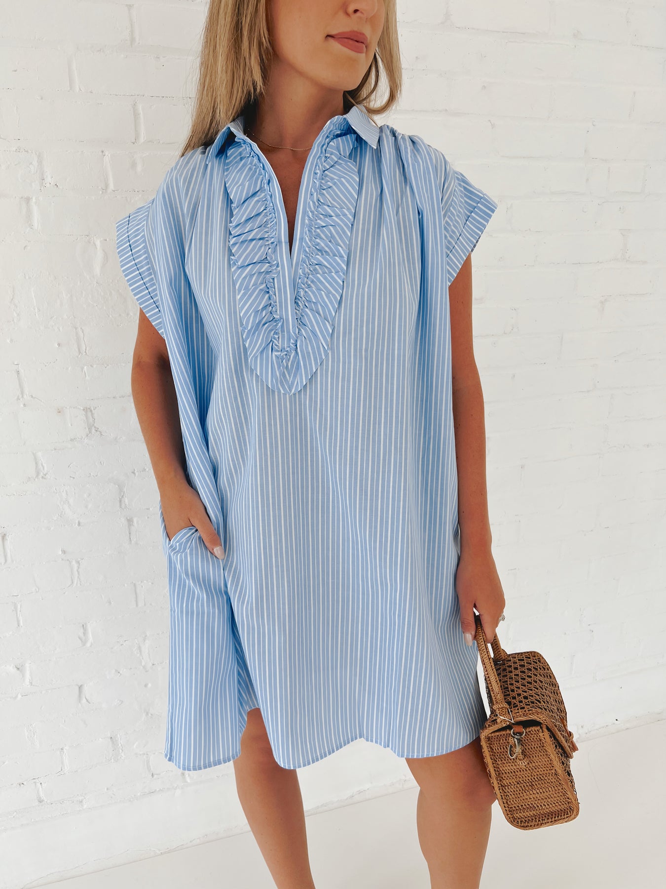Look good while you relax in Chatham Road Mini's shirt dress: the ultimate combination of comfort and style! With its ruffle detailing and loose fit, this dress is perfect for your days on vacation, casual day in the office or just hanging out. Love it so much? Shop all colors now!