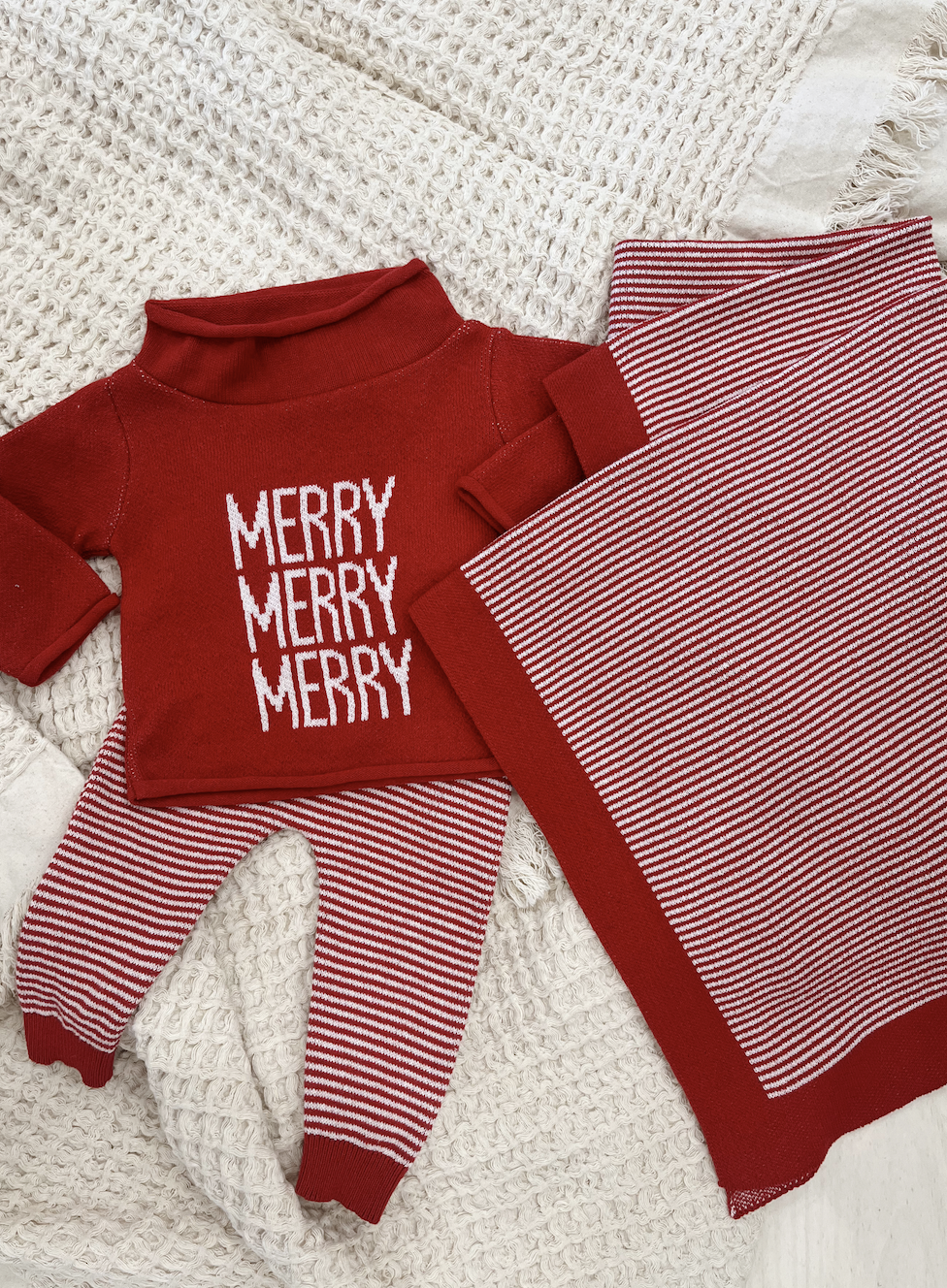 Wrap your little one in cozy charm with this Baby Blanket in cheerful red and white stripes. Perfectly paired with our matching merry rolled neck sweater and striped jogger, it keeps your baby snug and stylish from playtime to naptime. Soft, warm, and full of fun, this blanket brings a touch of town pride and comfort wherever your baby goes.