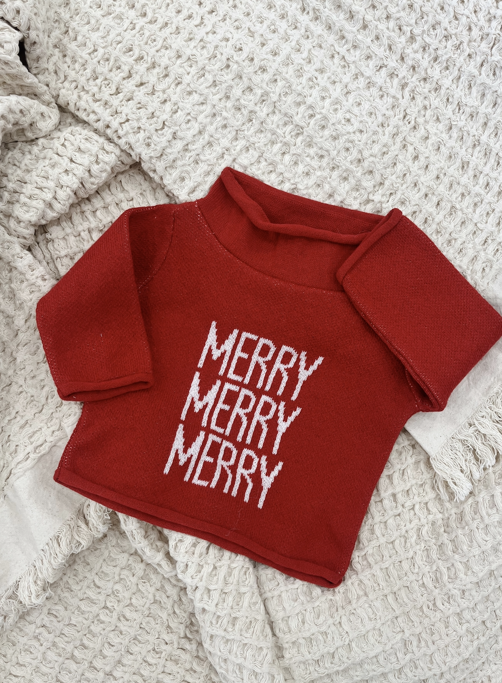Keep your little one cozy and festive with the Rollneck Merry Baby Sweater in vibrant red, featuring a charming snowflake icon. Its snug roll neck design adds extra warmth, perfect for winter fun. Pair it with our striped knit jogger and matching blanket for a playful, coordinated look that’s as cute as it is comfy.