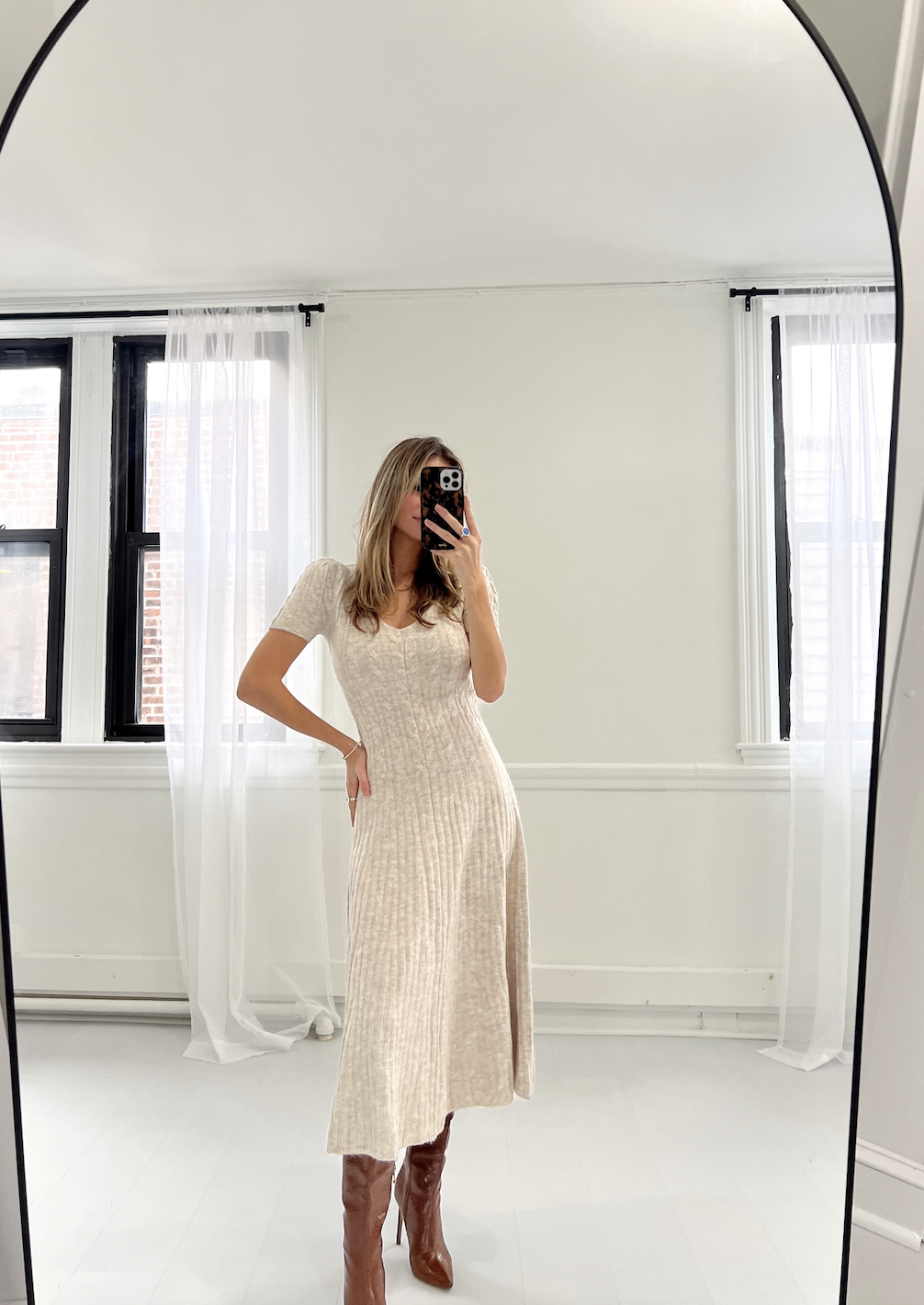 Meet your new go-to dress—the one that effortlessly transitions from day to night! This cable knit midi features a charming scoop neckline that frames your face beautifully, while the textured knit adds visual interest and warmth. The midi silhouette skims gracefully to a sophisticated length that works for any occasion. Crafted in creamy oatmeal, it's the perfect neutral that pairs with everything in your closet. Cozy, stylish, and endlessly wearable—this dress is basically a wardrobe MVP waiting to happen.