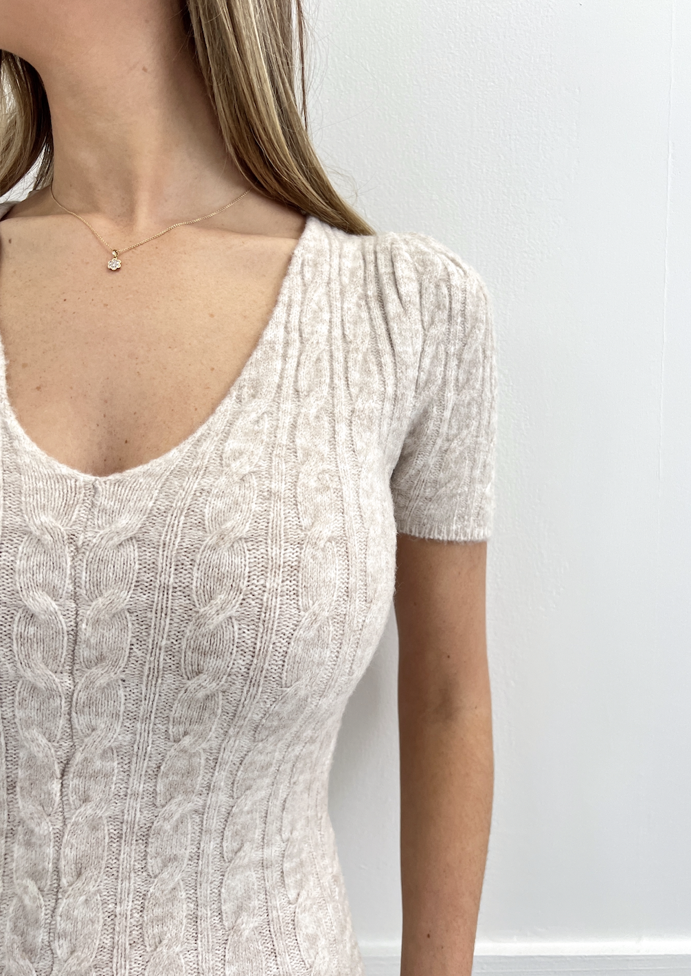 What's The Scoop Cable Knit Midi Dress - Oatmeal