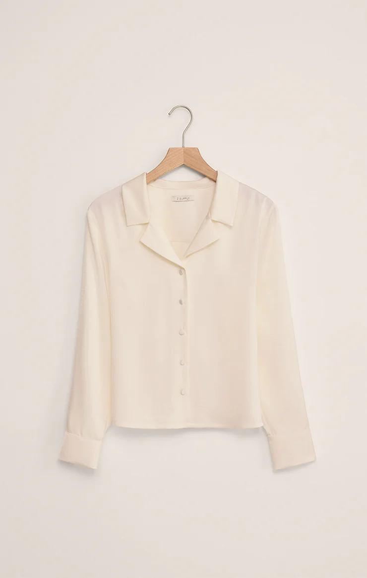 This luxe satin top offers a relaxed fit with a collared neckline and button-front design. Its fluid drape and understated sheen make it a versatile staple for workdays or nights out.